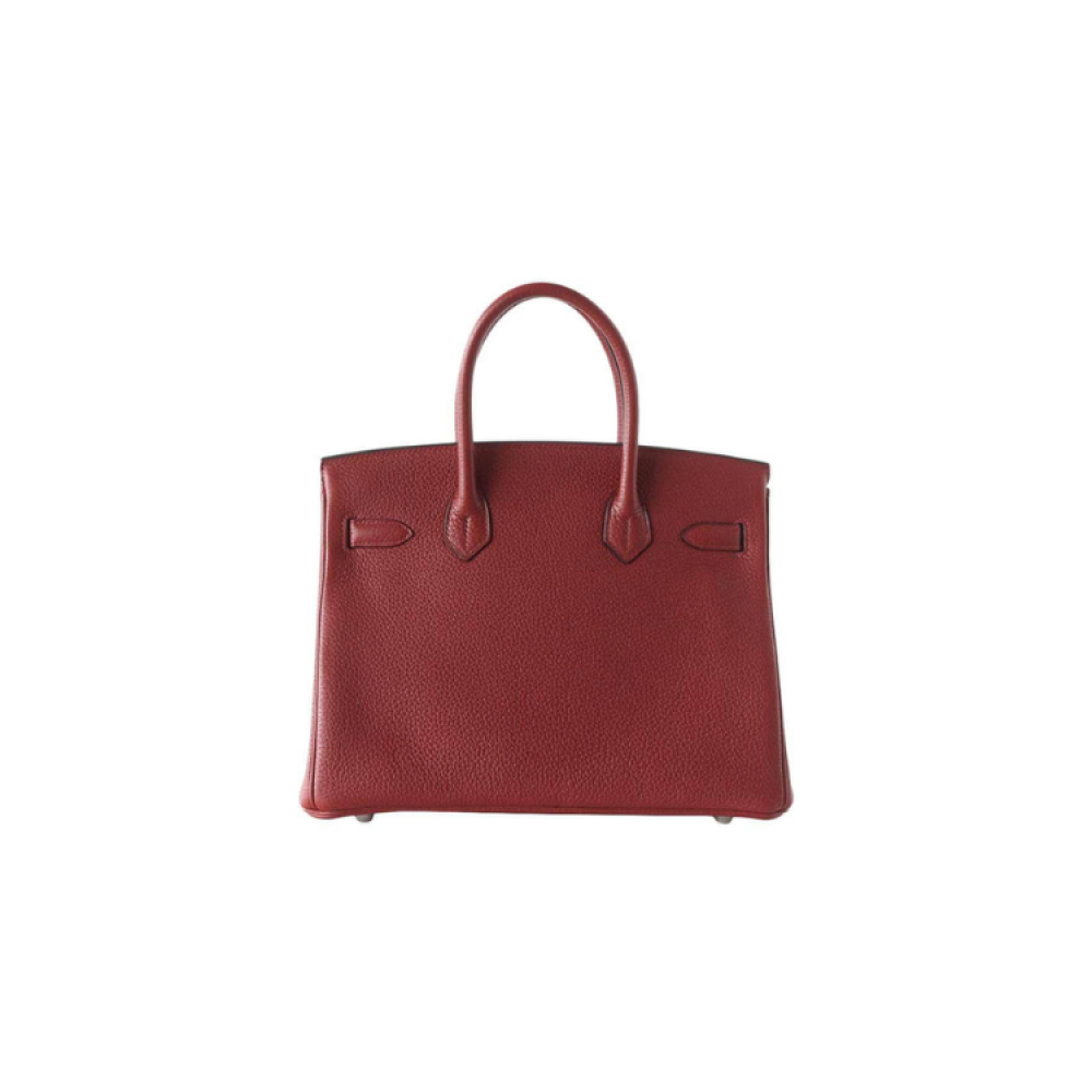 اكتشفي سحر حقيبة هيرميس بيركين بلونها العنابي الرائع، مع مقبض يد مريح وشعار فضي أنيق يزينها.