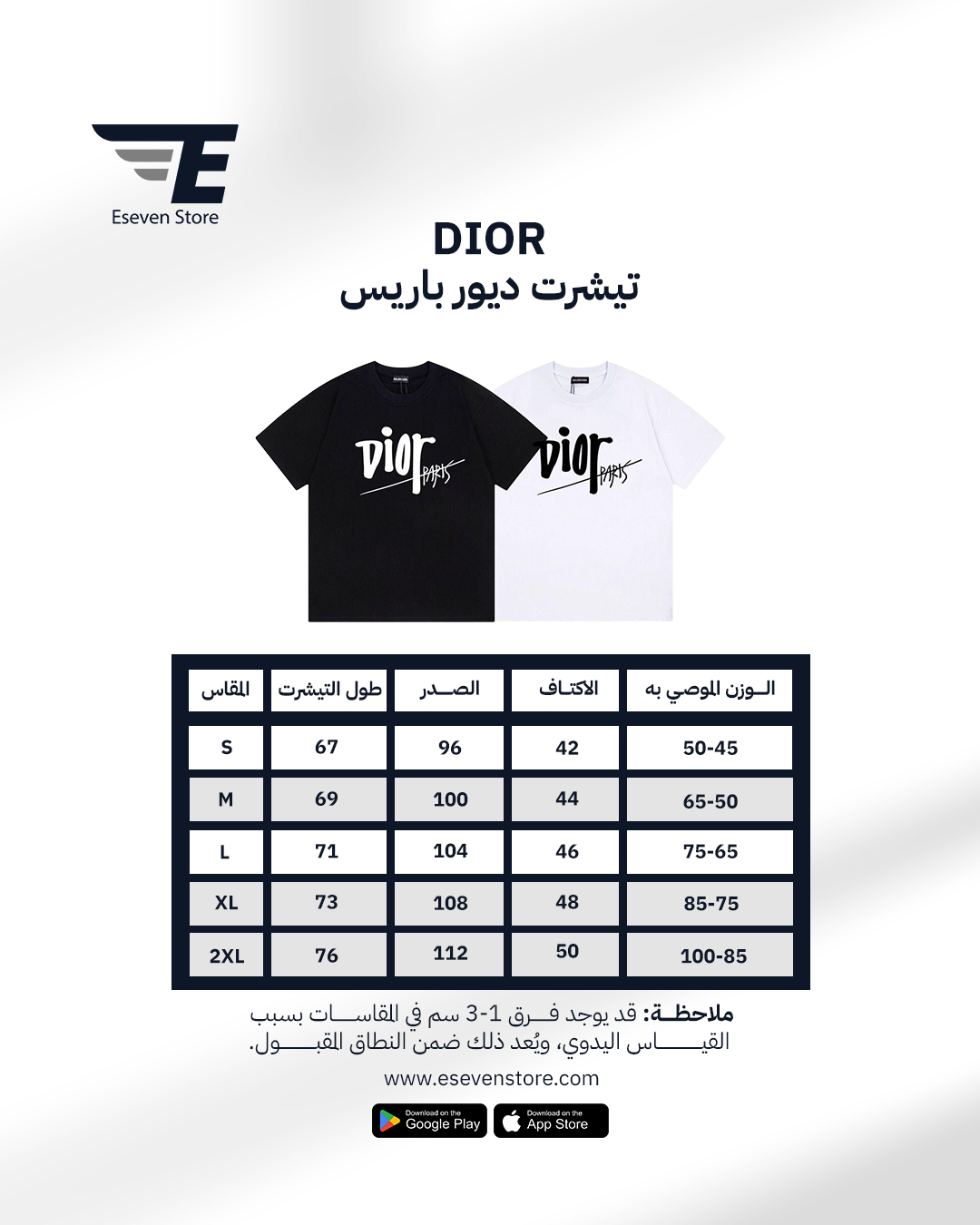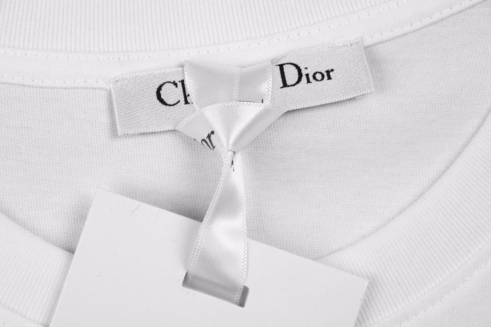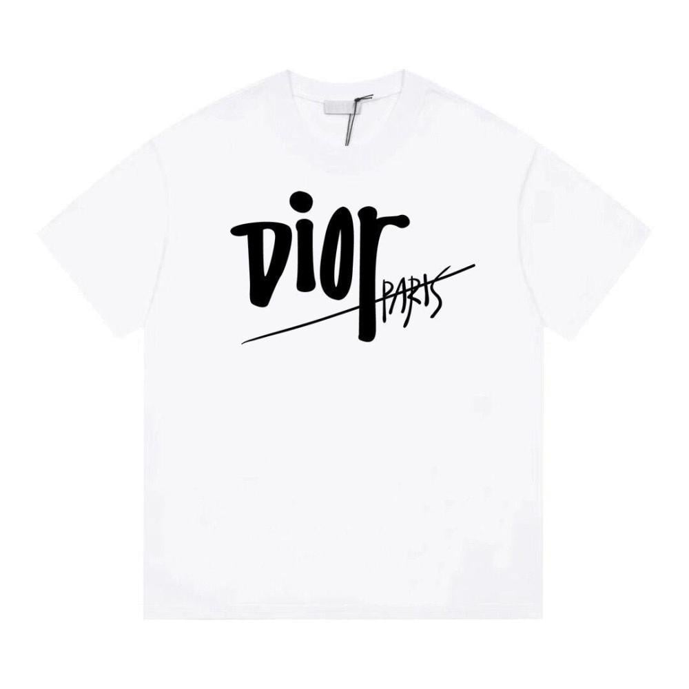 تي شرت ديور أنيق بلون أبيض طبعة شعار على الصدر