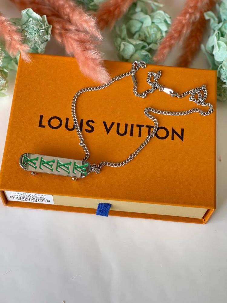 قلادة لويس فيتون للرجال سلسال طويل بشعار LV بلون اخضر