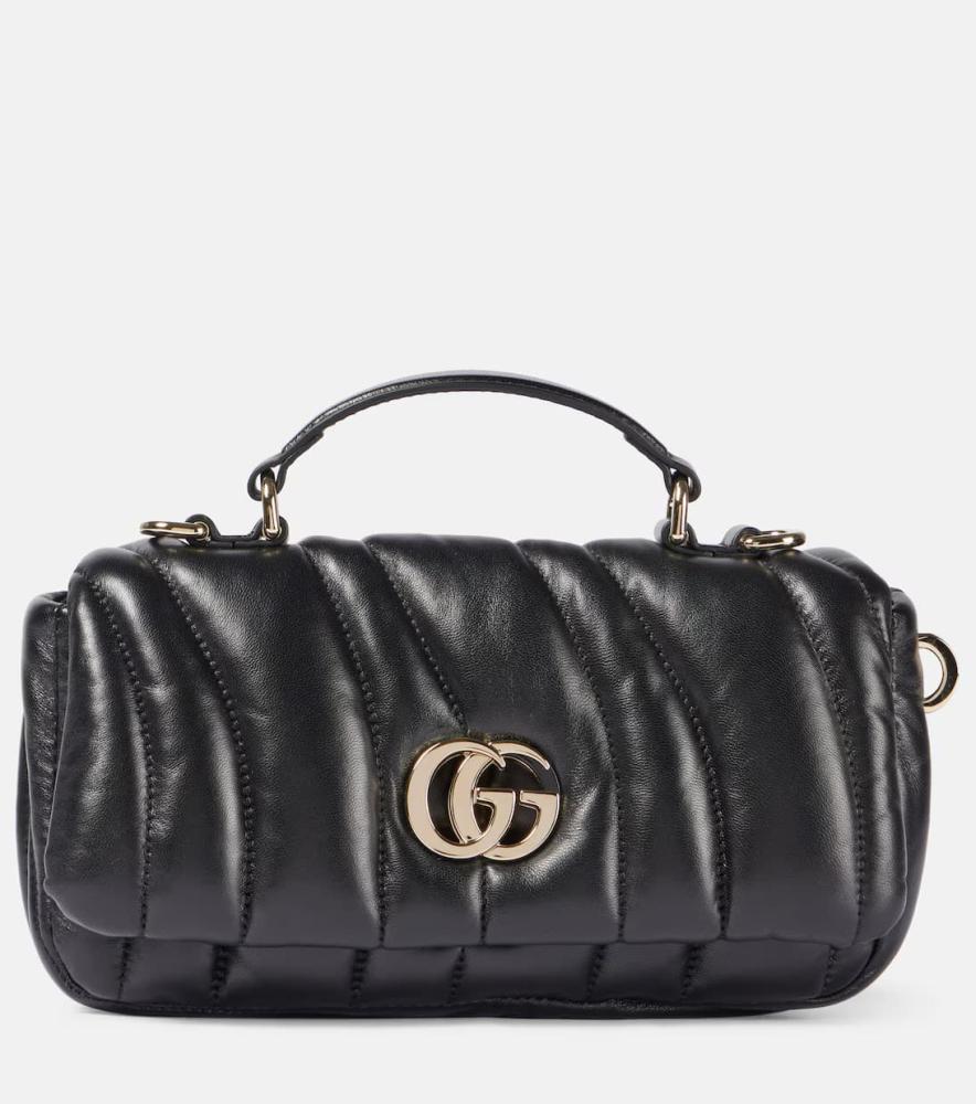 شنطة جلد محزز قوتشي ميلانو GG لون اسود بسلسلة كتف