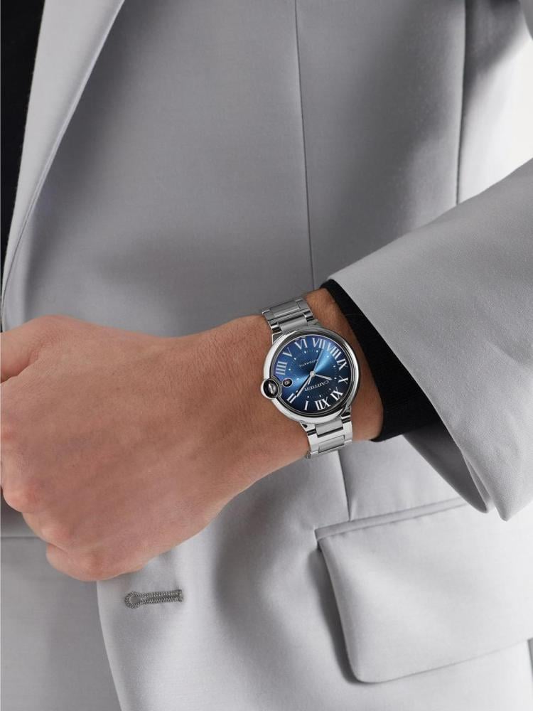 ساعة رجالي كارتير بالون بلو لون فضي بمينا أزرق