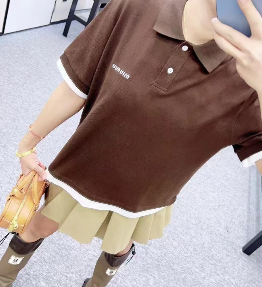 تيشرت ميوميو سبور رياضي واسع ياقة بأزرار لون بني