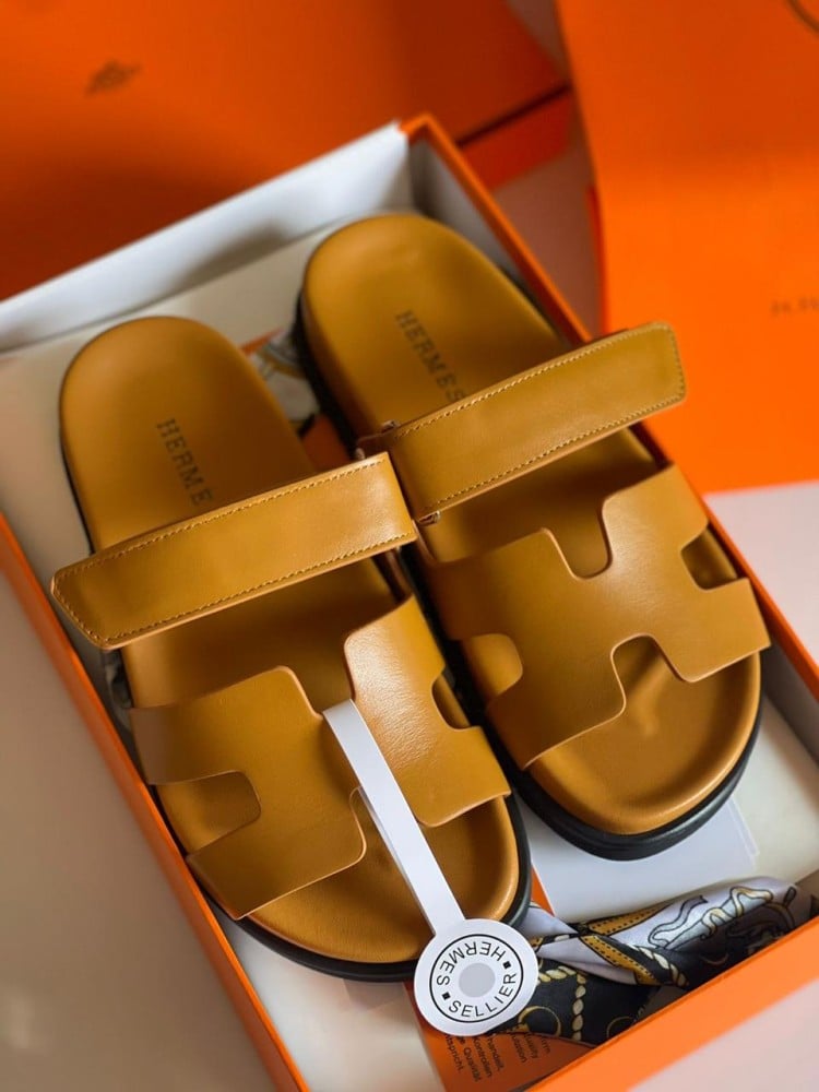استمتعي بالفخامة والأناقة مع سليبر شايبر الفلات من هيرميس باللون العسلي، واجعليه جزءًا من مجموعتك الأساسية لتضفي لمسة من الرقي على إطلالاتك اليومية.