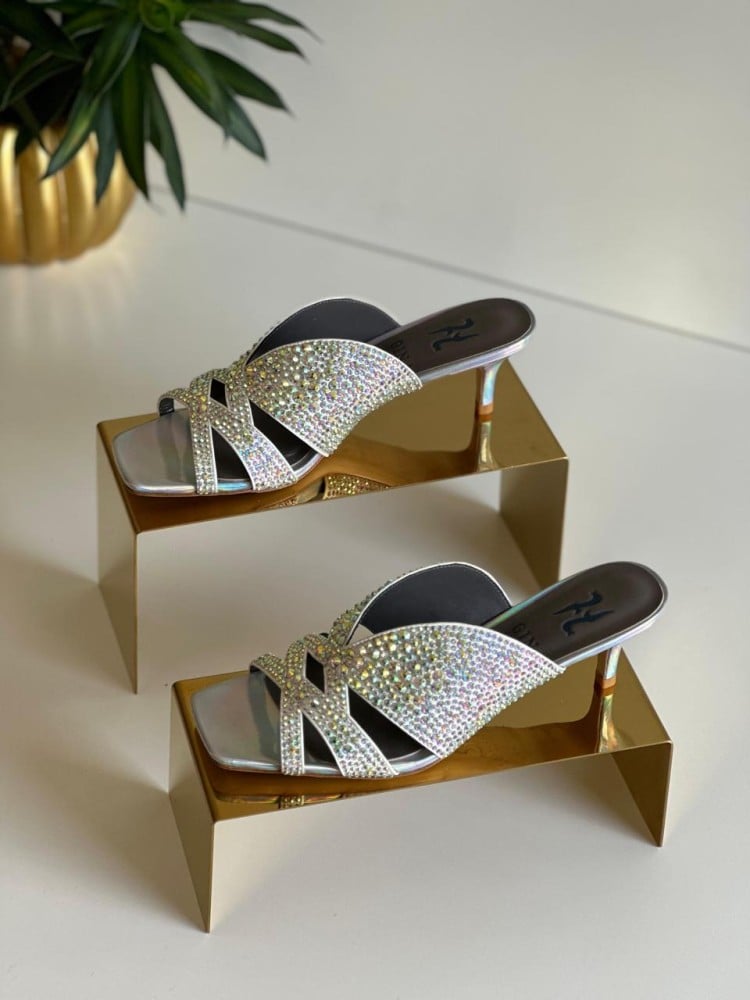 صندل كعب منخفض من جينا سوبر ماستر كواليتي ستراس فضي
