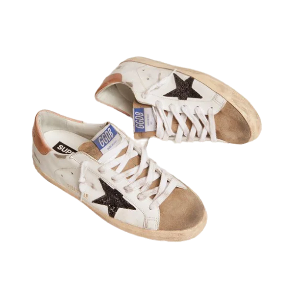 اجعلي خطواتك تتألق بأناقة مع سنيكر رياضي غولدن غوس سوبر ستار للنساء بتصميم أنيق باللون الأبيض والبيج.