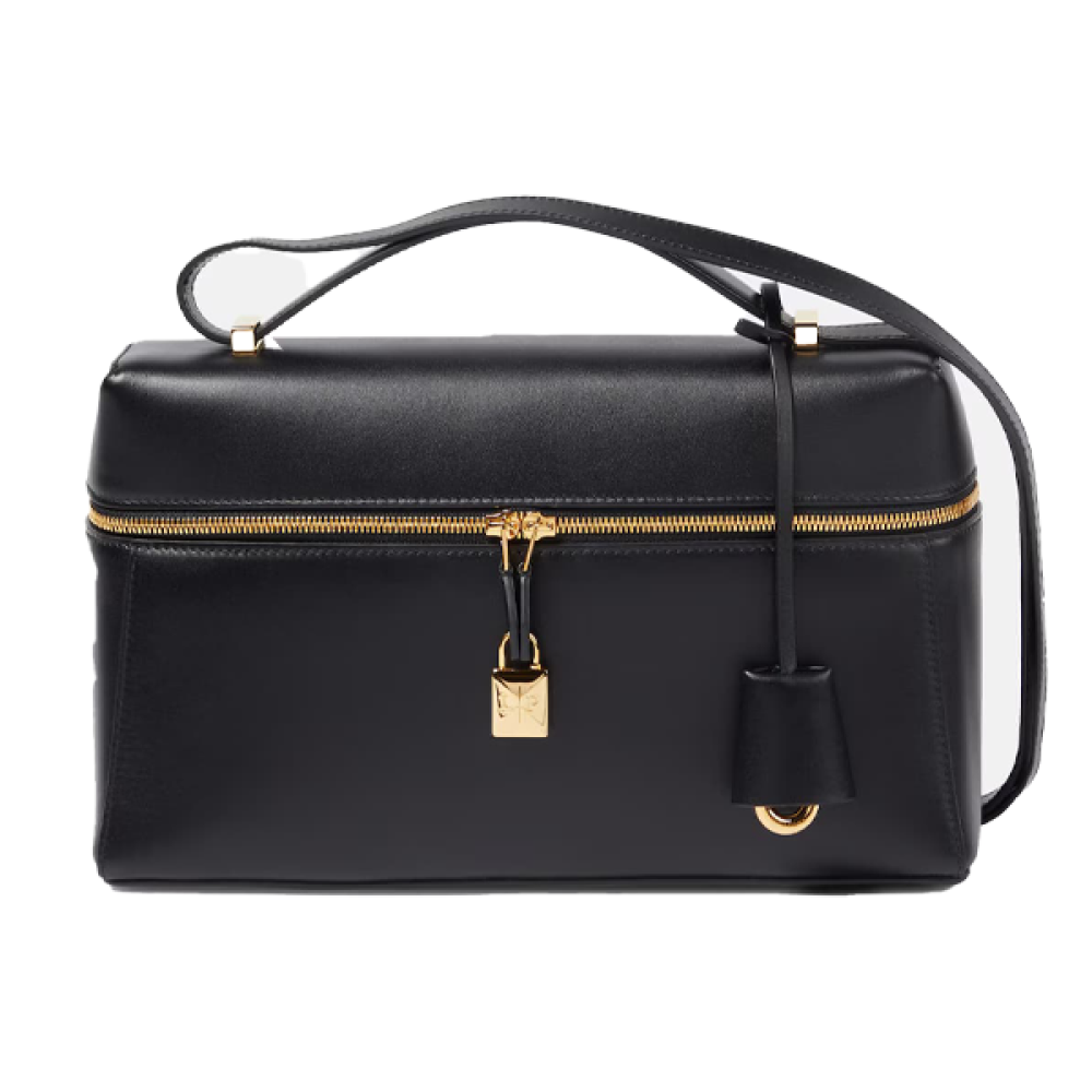 حقيبة جلد ناعم لورو بيانا L27 لون اسود بحامل كتف