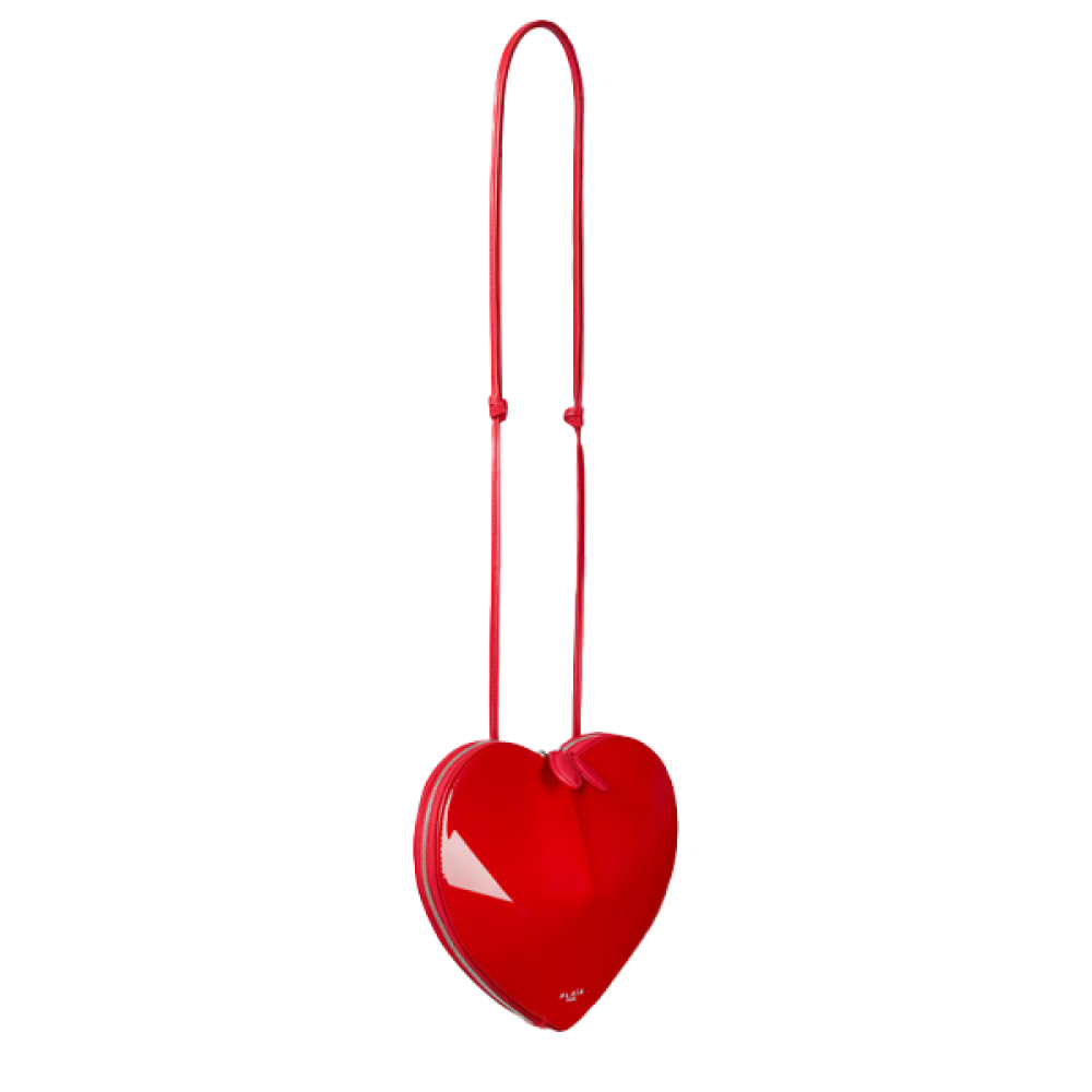 اكتشفي الأناقة الفاخرة مع حقيبة عصرية للسيدات من الايا بشكل قلب ولون أحمر لامع.