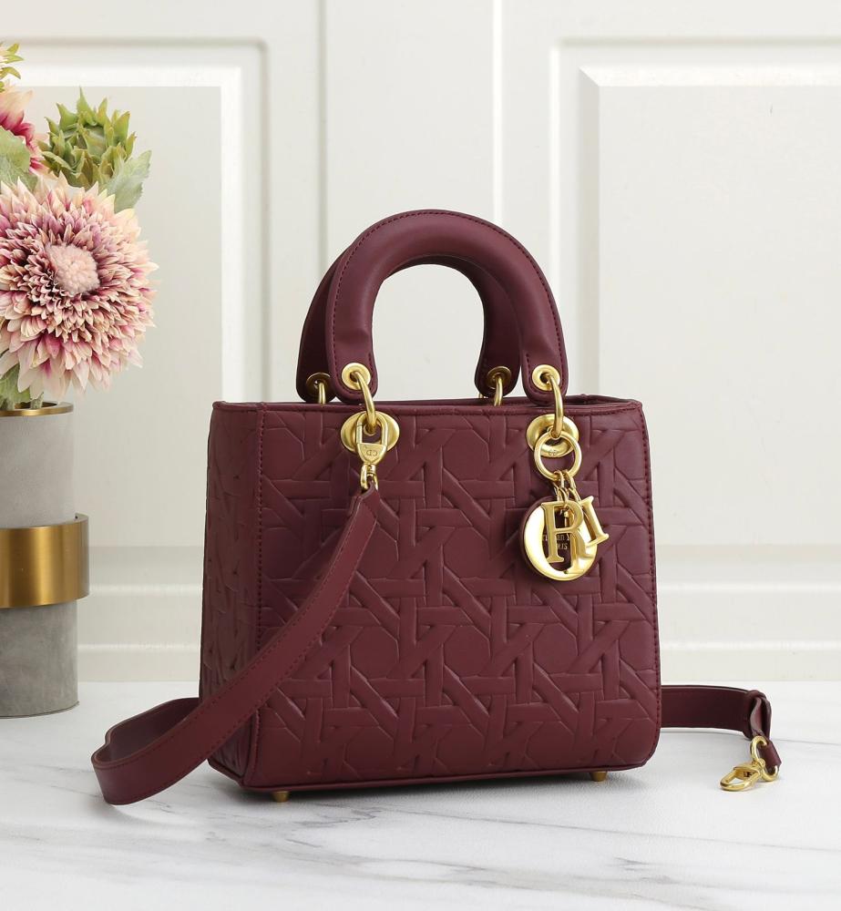 حقيبة ليدي ديور بمقابض علوية لون برغندي معدن ذهبي