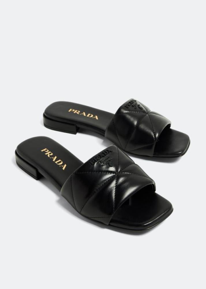 شبشب جلدي فاخر للنساء من برادا لون أسود فخم
