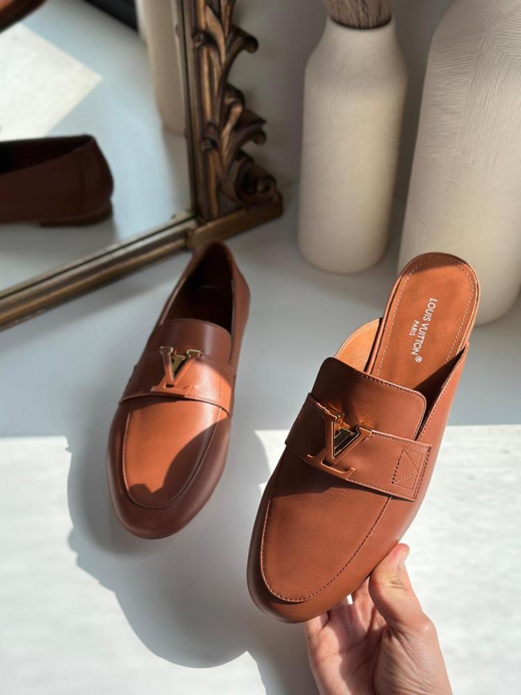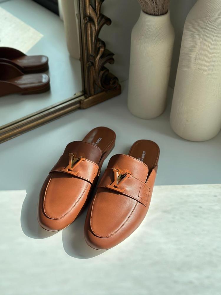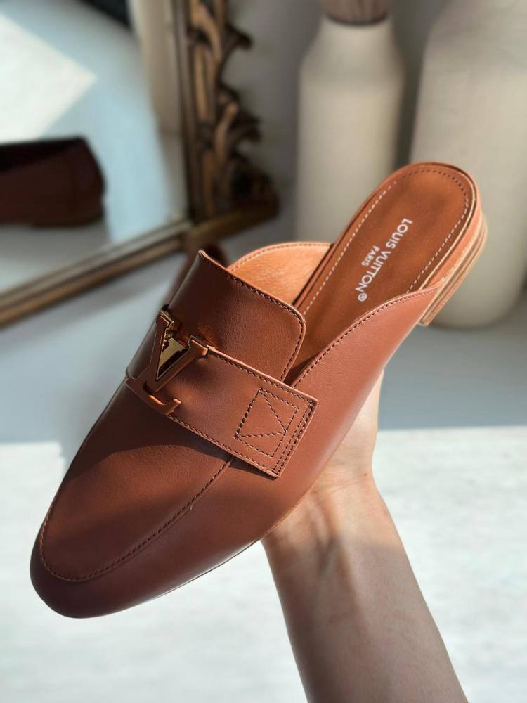 شوز مفتوح نسائي لويس فيتون سليبر مغلق جلد بلون عسلي