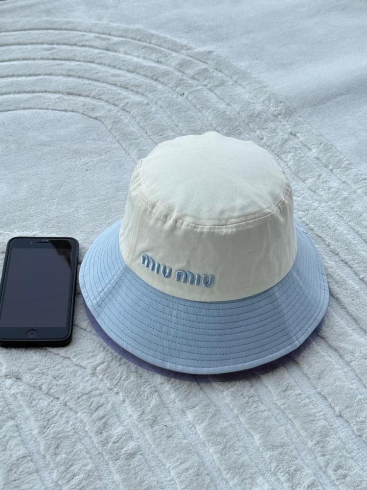 قبعة نسائية ميوميو قطنية بلون أبيض وأزرق