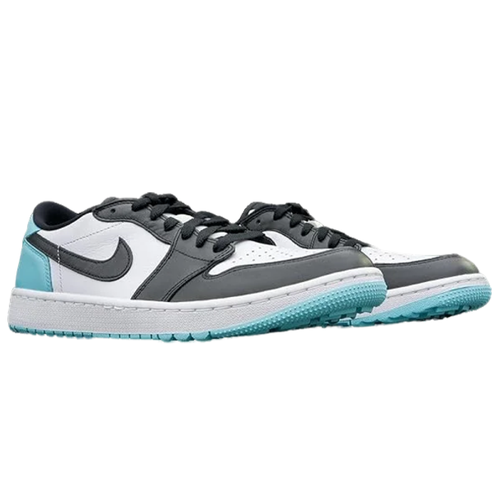 خلك دايم في القمة مع شوز اير جوردن 1 لو بلونه الأبيض والأسود ولمسة سكاي بلو اللي تعطيك ستايل جريء داخل وخارج الملعب.