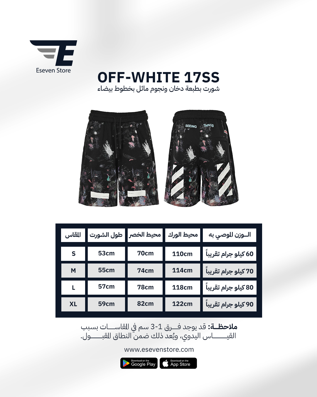 شورت اوف وايت رجالي طبعة دخان ونجوم بخطوط مائلة لون اسود