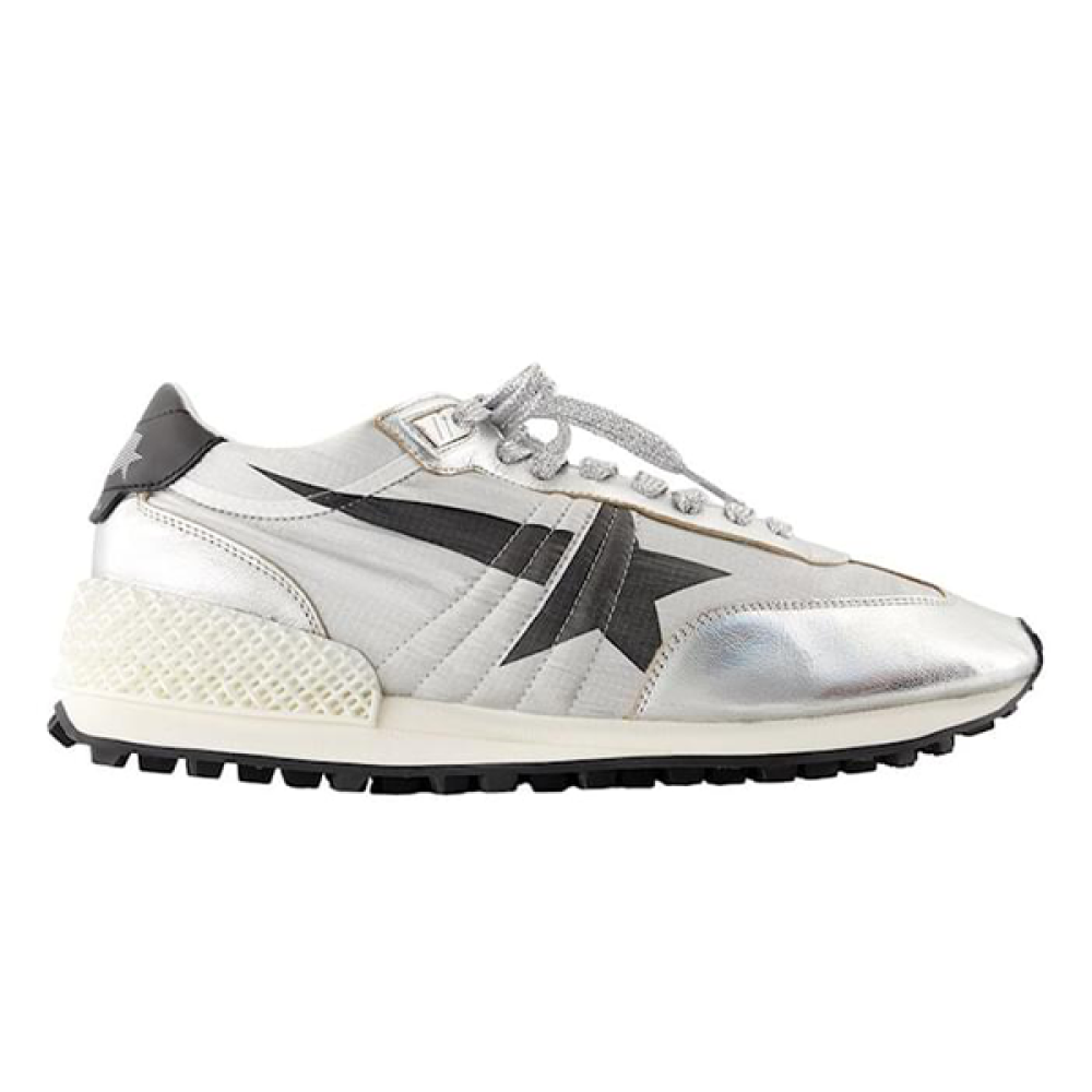سنيكر منخفض جولدن جوس × صن مي باللونين الفضي والأسود