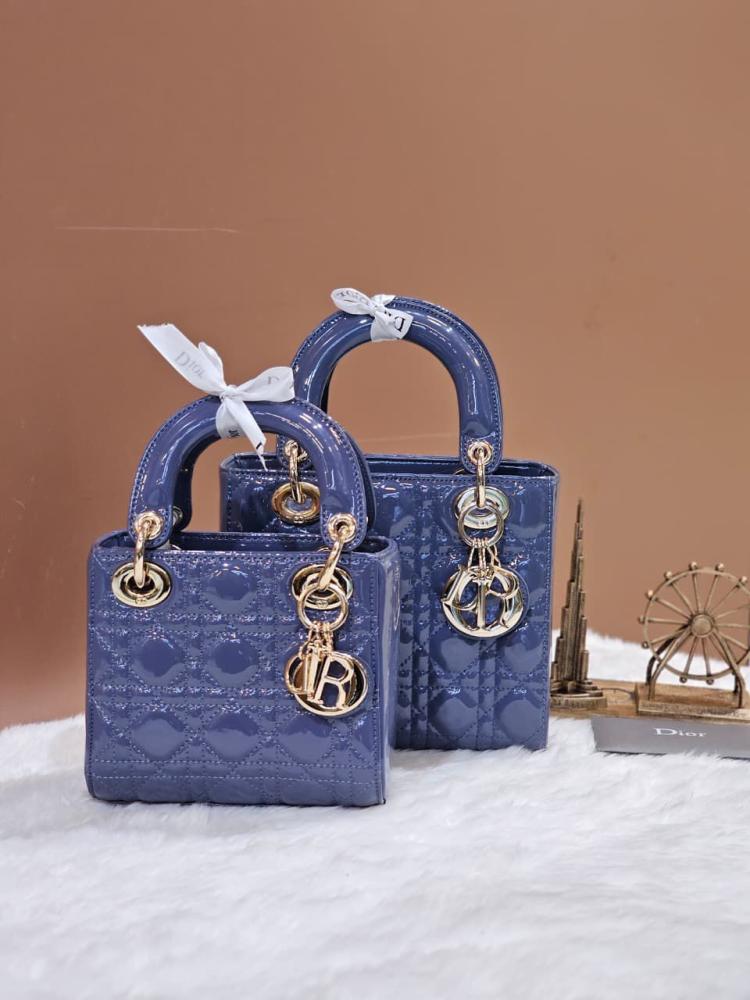 شنط نسائية ليدي ديور جلد لامع لون كحلي معدن ذهبي
