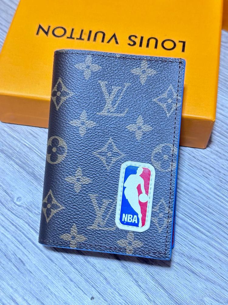 محفظة نقود كلاسيكية من لويس فيتون بنقشة المونوغرام بلوني الكحلي والرمادي، تجمع بين التصميم العصري والأناقة الكلاسيكية لتكون قطعة فاخرة تناسب الرجل العملي.