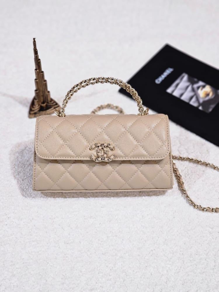 شنطه شانيل قلاب بمقبض علوي وحامل كتف لون بيج