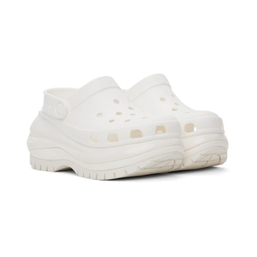 استمتعي بالراحة المطلقة دون التنازل عن الأناقة مع كروكس Mega Crush Clogs النسائي باللون الأبيض. هذه الأحذية العصرية مصممة لتلفت الأنظار وتوفر الدعم الكامل لقدميك طوال اليوم. بفضل تقنية Crocs Comfort™ الشهيرة، ستشعرين بخفة وراحة في كل خطوة بفضل مادة Croslite™ الخفيفة التي تمتص الصدمات.