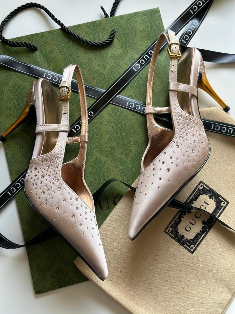 اجعلي صندل جوتشي الراقي بحزام خلفي وستراس بلون بيج جزءًا من إطلالتك اليومية، واستمتعي بالأناقة والفخامة في كل خطوة تخطوينها.