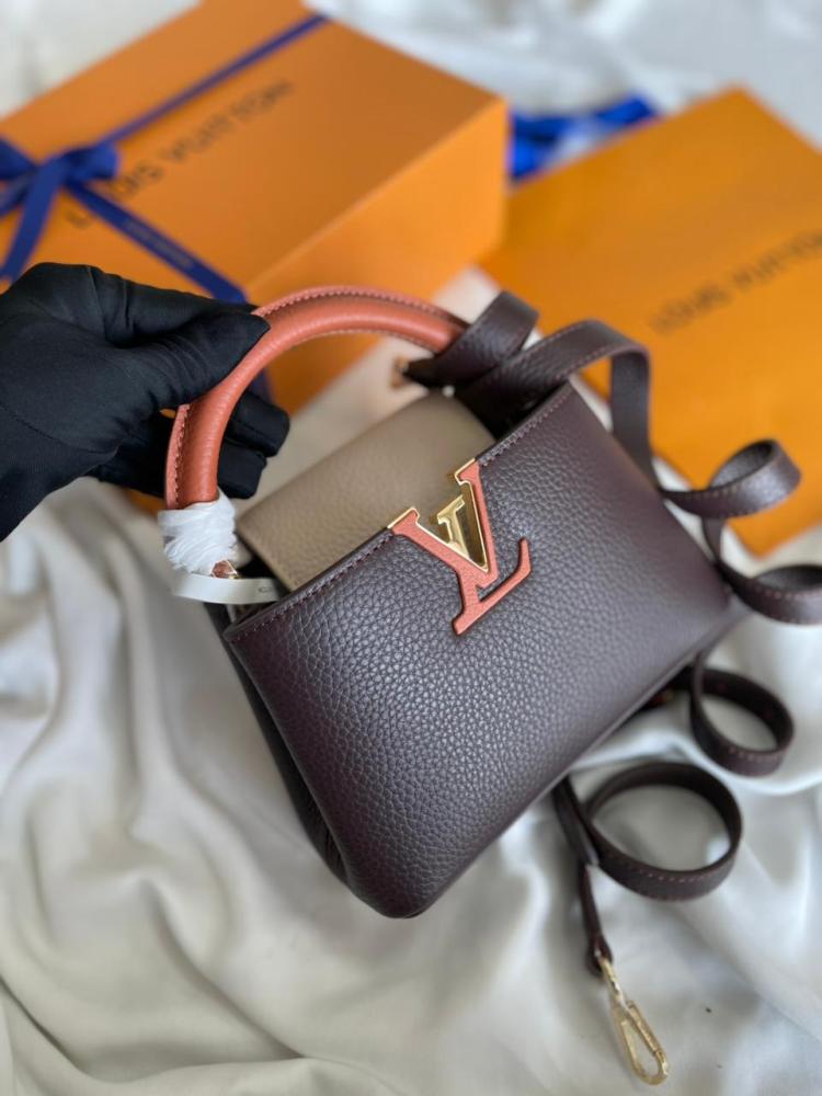 حقيبة كابوسين من لويس فيتون المصنوعة من جلد الحبيبات الفاخر بلون بني دافئ.