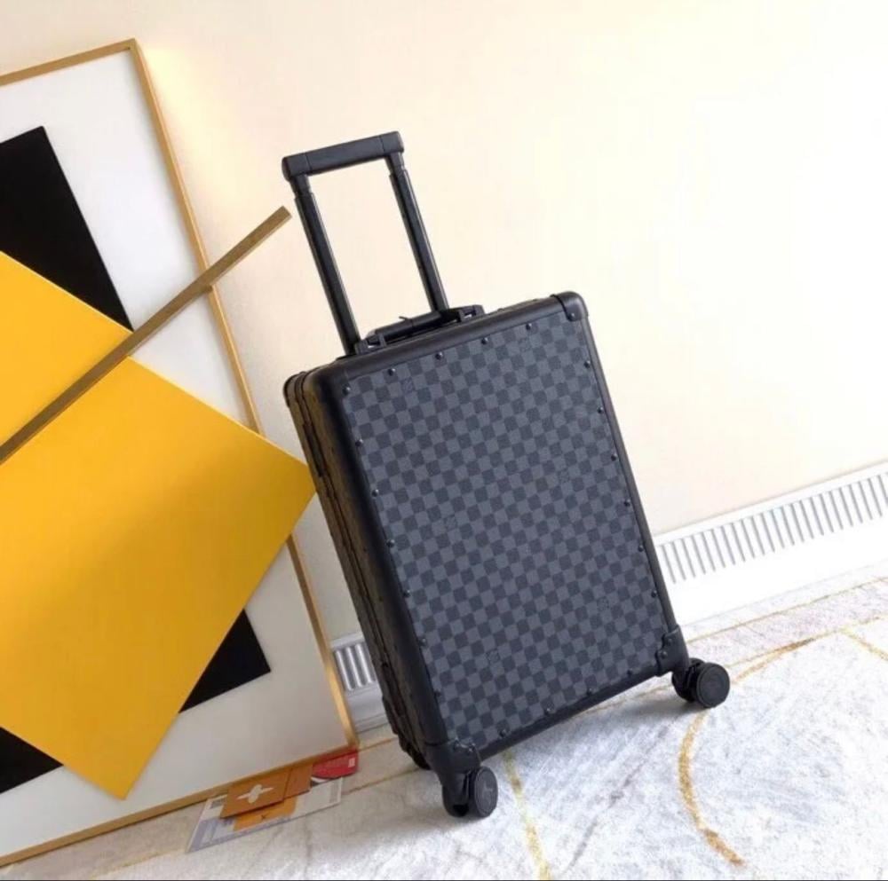 شنطة سفريات لويس فيتون بنقشة المربعات الكلاسيكية بلون أسود مع عجلات فاخرة