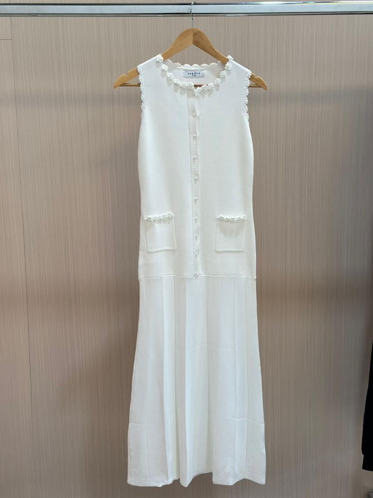 فستان سبور بلا أكمام ساندرو طويل لون ابيض مزين بورود