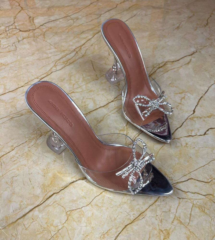 هيلز شفاف عصري من امينة معادي بفيوكة فضي