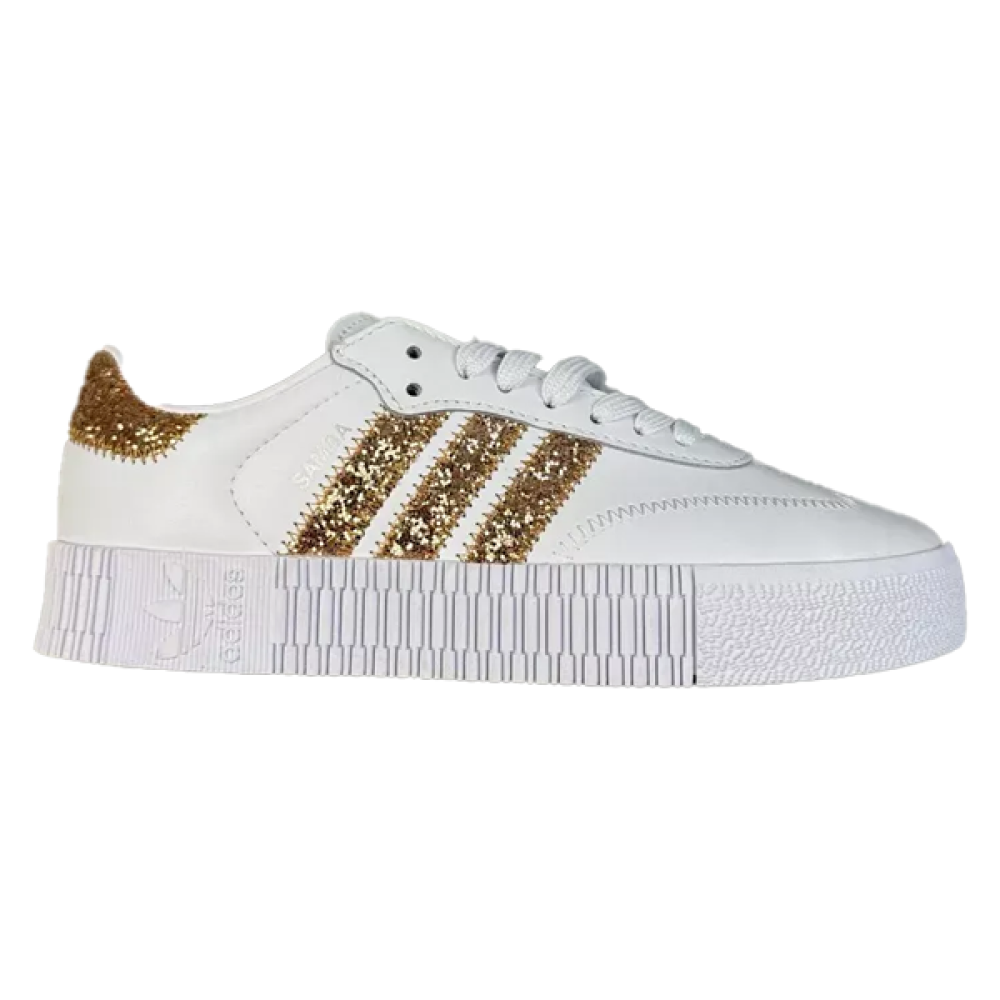 سنيكر اديداس سامبا نسائي أبيض مع ذهبي جليتر
