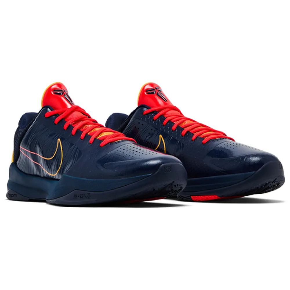 حذاء نايكي كوبي5 الرياضي للجنسين باللون نايت بلو وأورنج، تصميم يجمع بين الأناقة العصرية والراحة المثالية لكل خطوة.