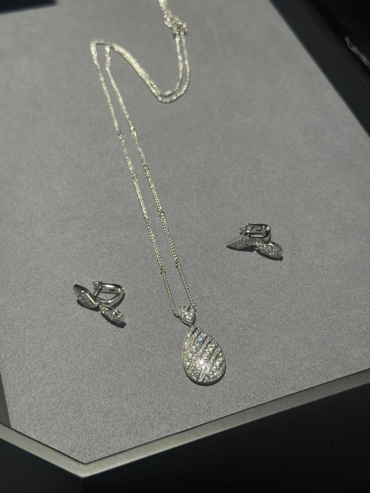 قلادة وأقراط شاميه مجموعة جوزفين آيغريت بلون فضي