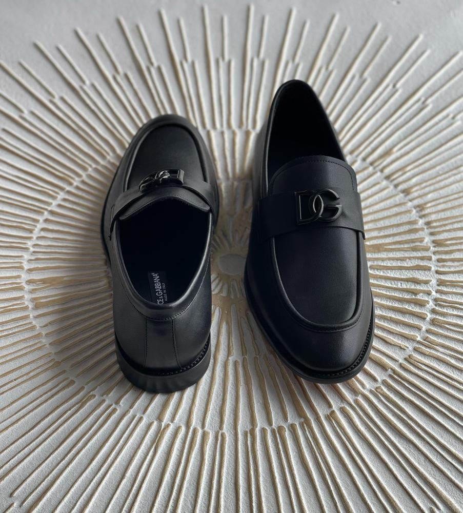 حذاء رسمي جلد للرجال من دولتشي آند غابانا بدون أربطة – لون أسود كامل