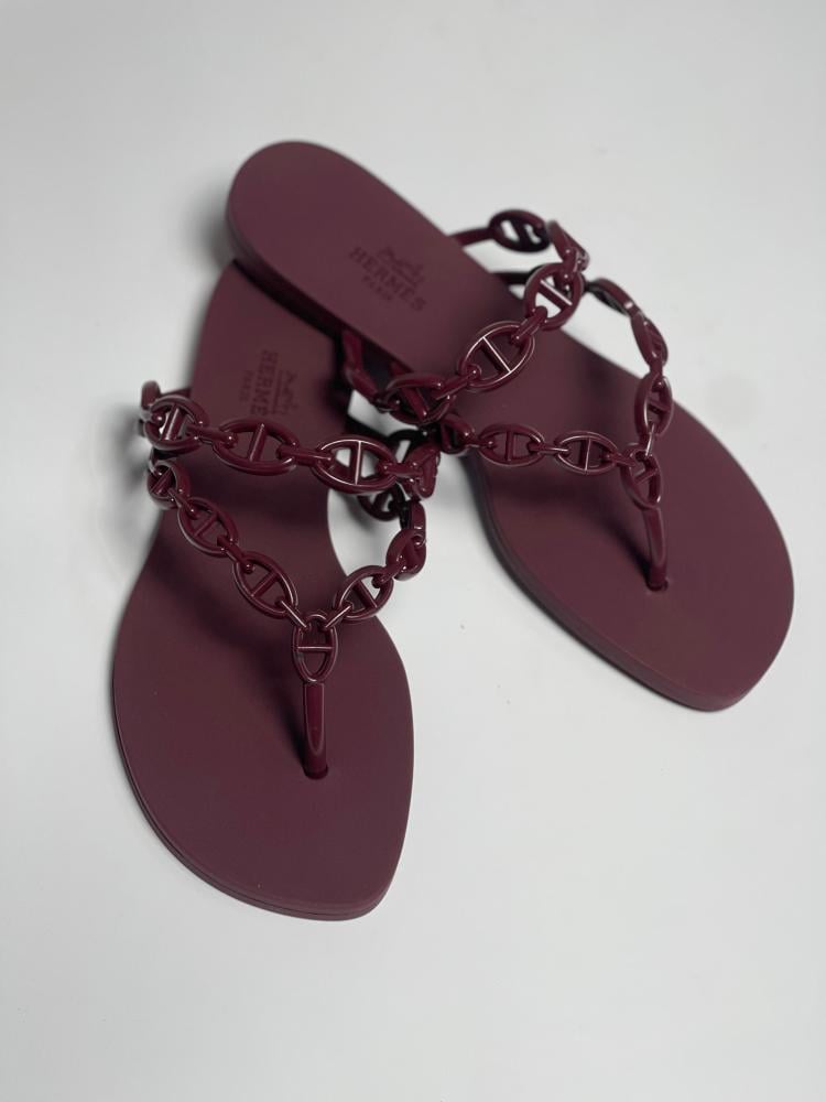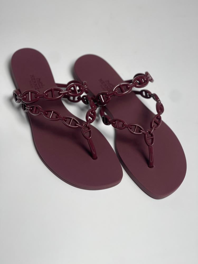دللي نفسك بأناقة راقية مع سليبر هيرميس النسائي بلونه الخمري الجذاب وسلسلته المميزة.