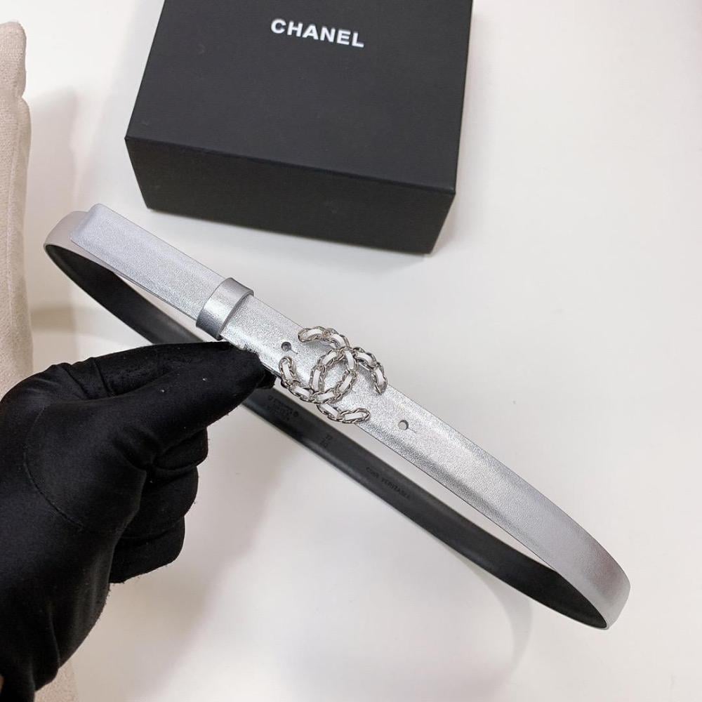 أضفي لمسة من الأناقة والفخامة إلى إطلالتك مع حزام خصر للنساء من شانيل بعرض 2 سم، بلونه السيلفر المعدني الراقي.