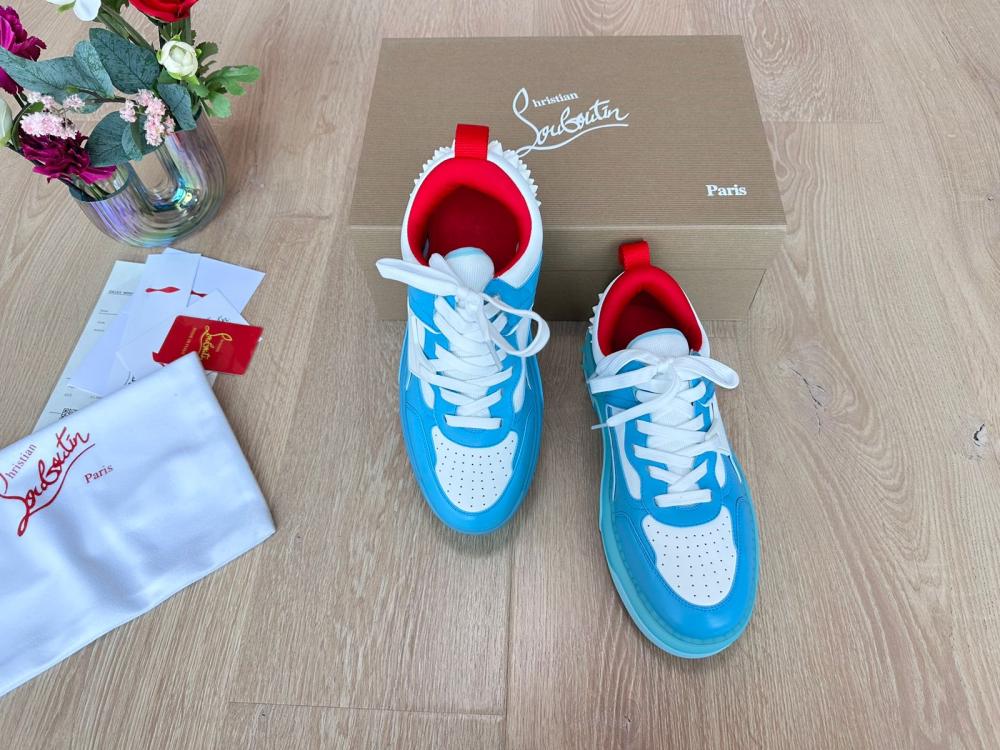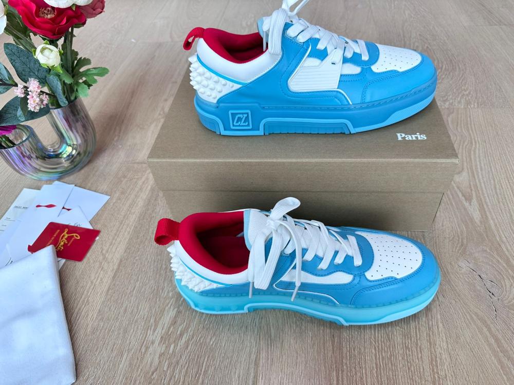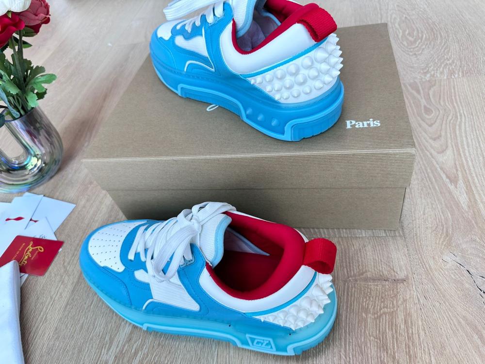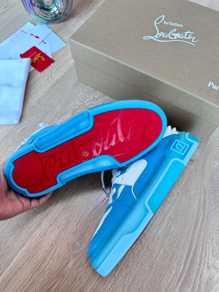 سنيكر رياضة رجالي من كريستيان لوبوتان بلونه الأزرق الرائع بأسلوب متألق يمزج بين الأناقة العصرية والراحة العالية. يتميز هذا السنيكر بتصميم يجمع بين الجمالية والأداء، حيث تبرز التفاصيل الفريدة مثل شعار كريستيان لوبوتان المميز، والخامات المتفردة المستخدمة في الصناعة.