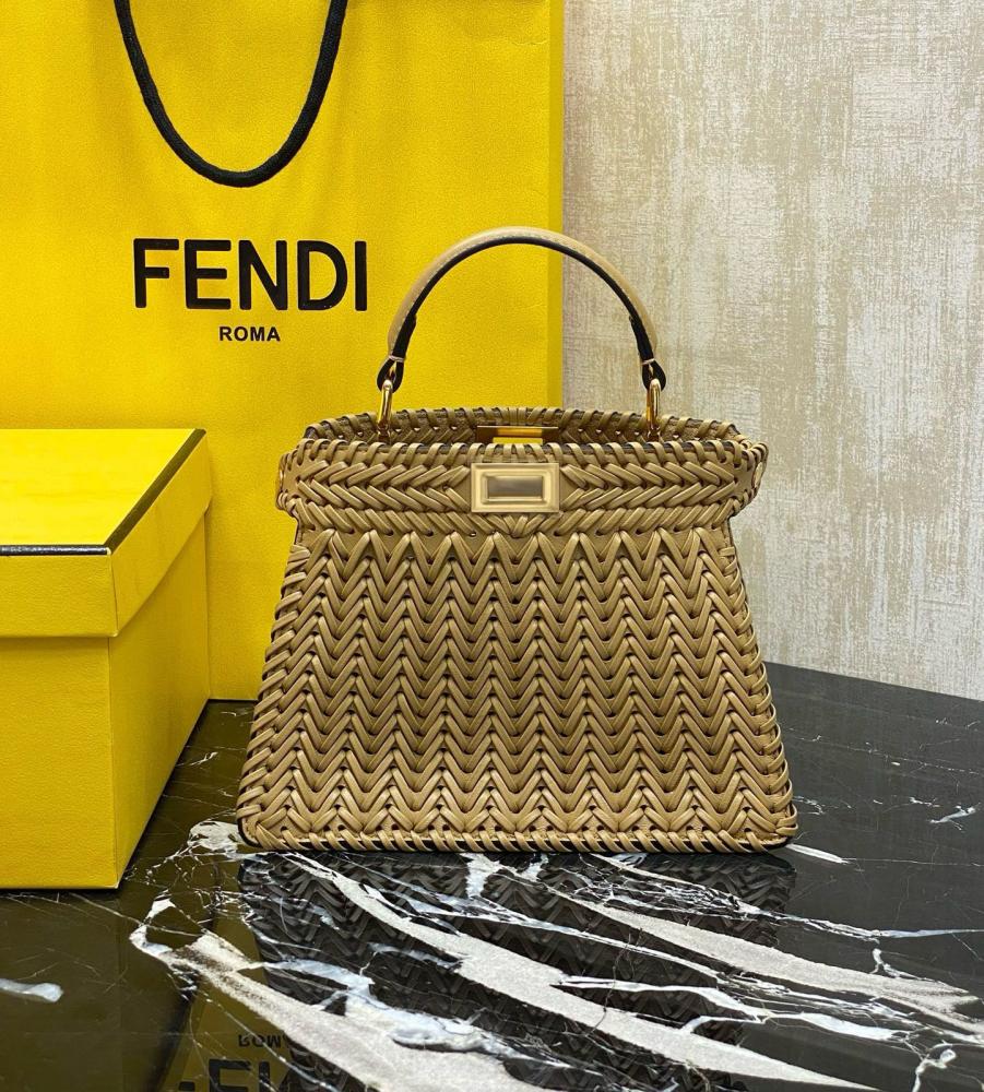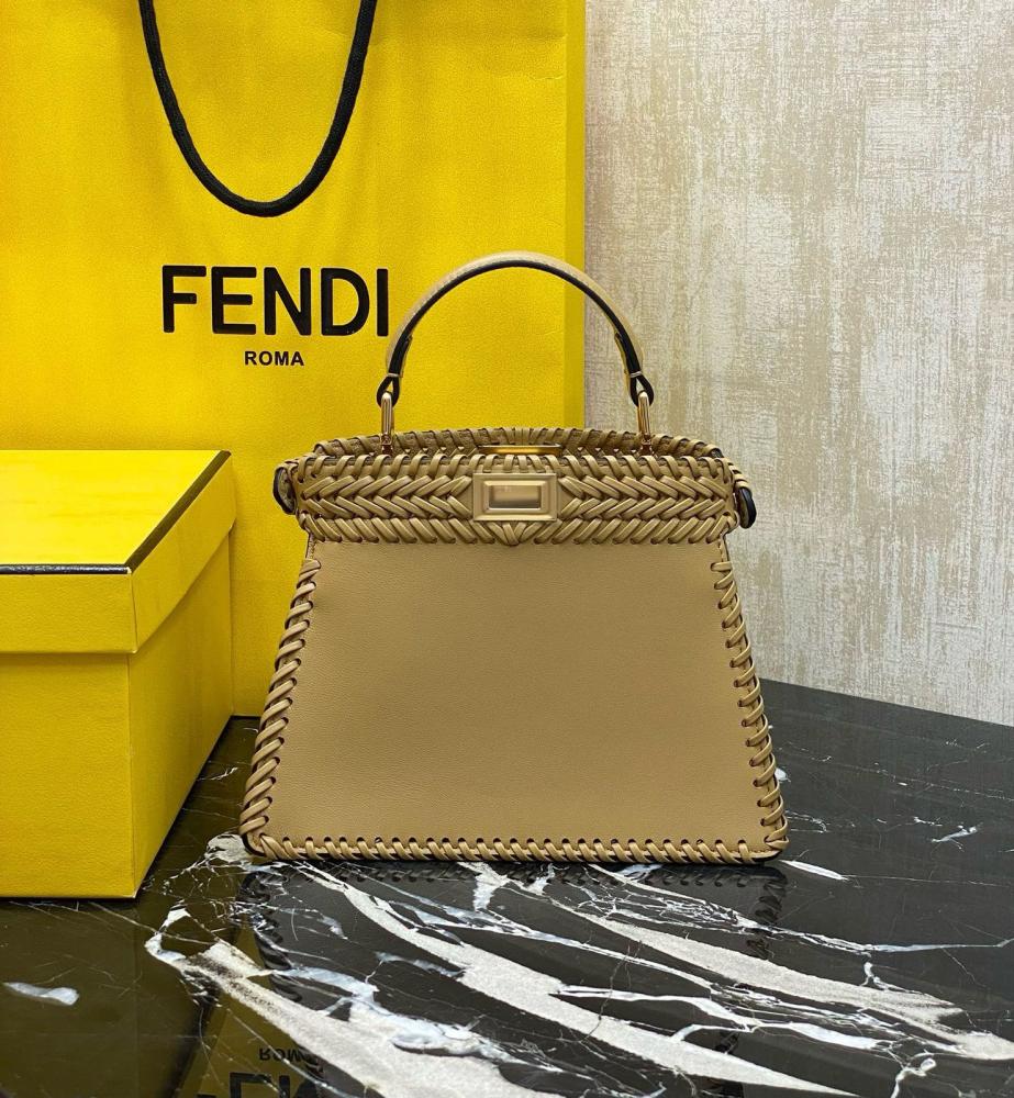 حقيبة نسائية fendi بيكابو I see u جلد مجدول 21سم بلون خردل