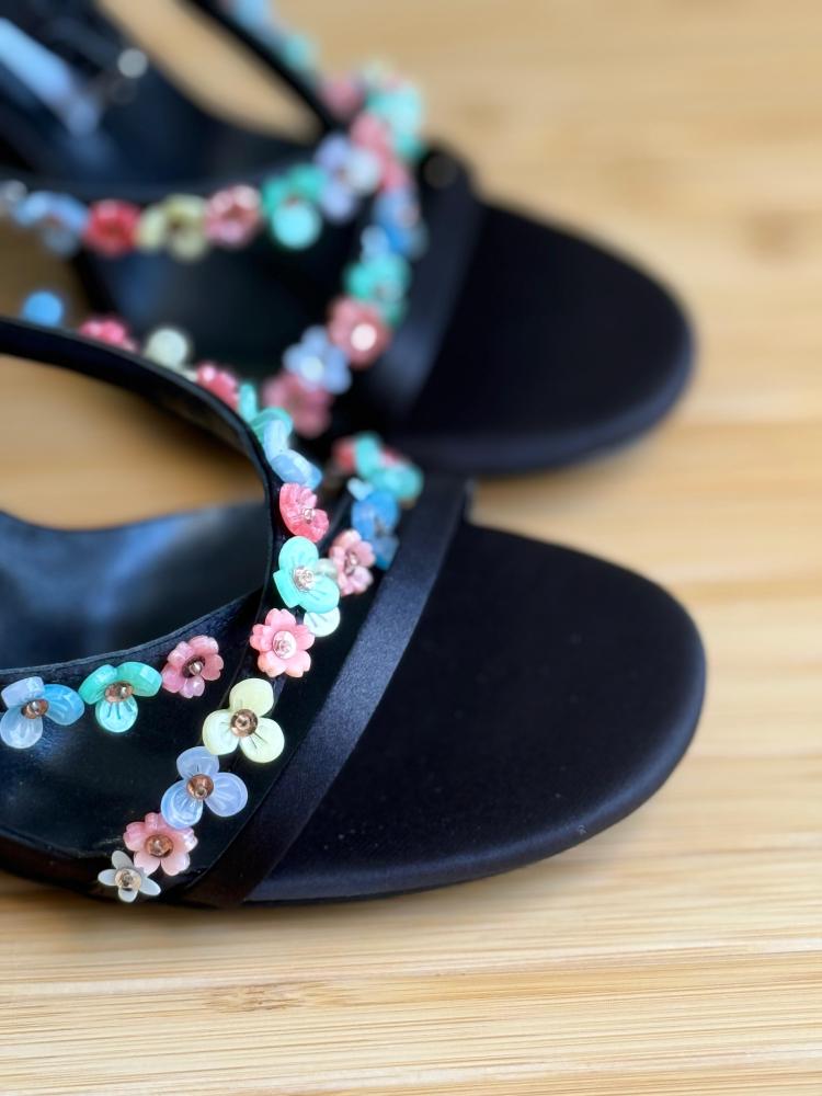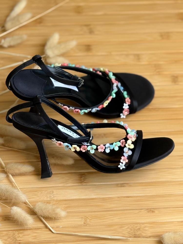 احصلي على صندل جيمي تشوو Zea 95 الأسود المزخرف بالزهور من اي سفن ستور لإطلالة فاخرة ومميزة