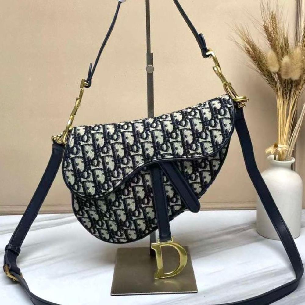 شنطة بحامل كتف ديور سادل طبعة اوبليك بيج واسود