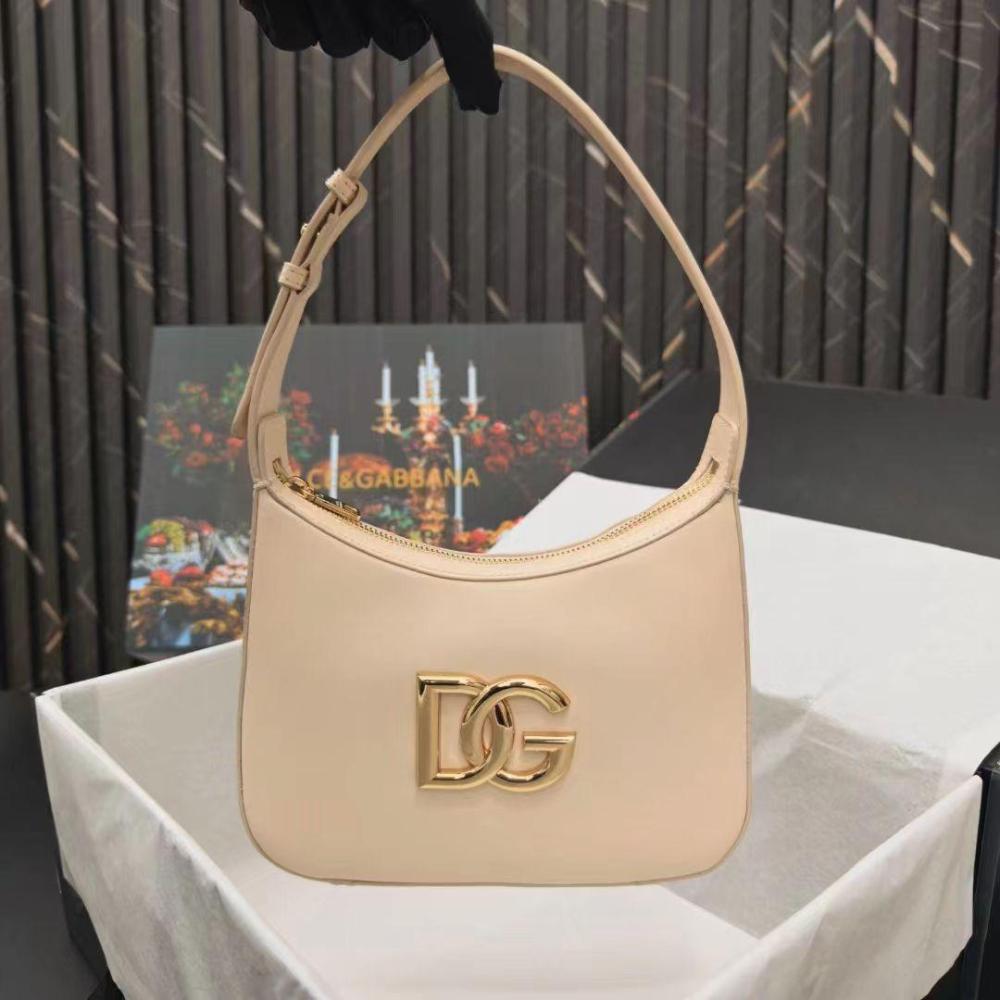 حقيبة كتف نسائية بسحاب من دولتشي أند جابانا، بقياس 23 سم، باللون الكريمي، تجسد الأناقة العصرية والفخامة في تصميم واحد.