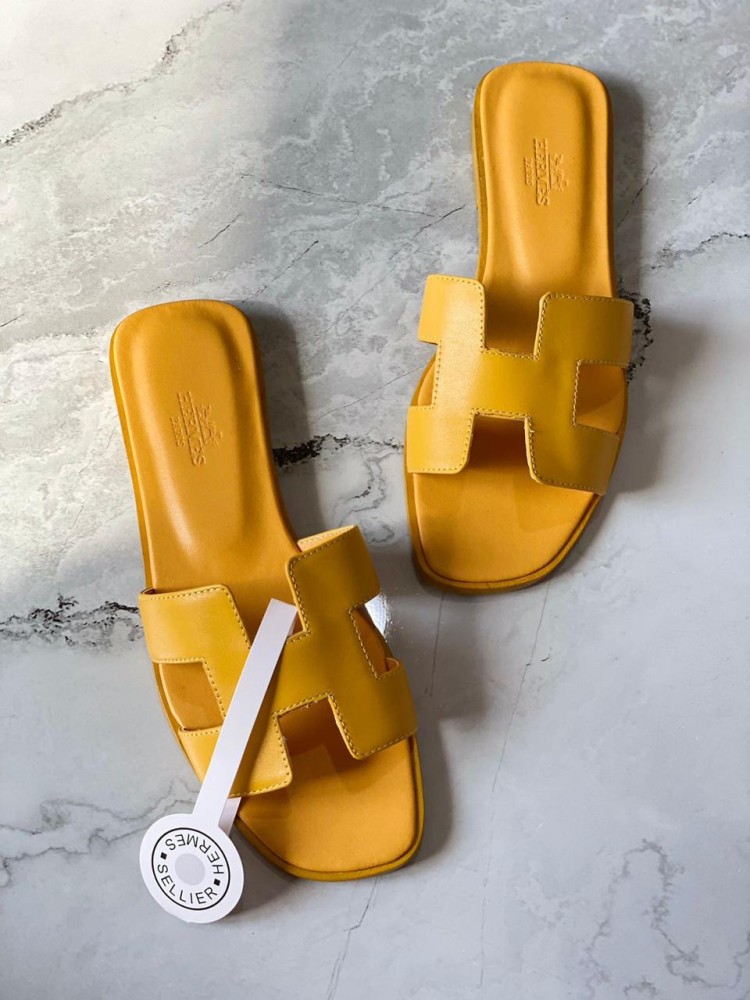 سليبر جلدي نسائي هيرميس اوران لون أصفر
