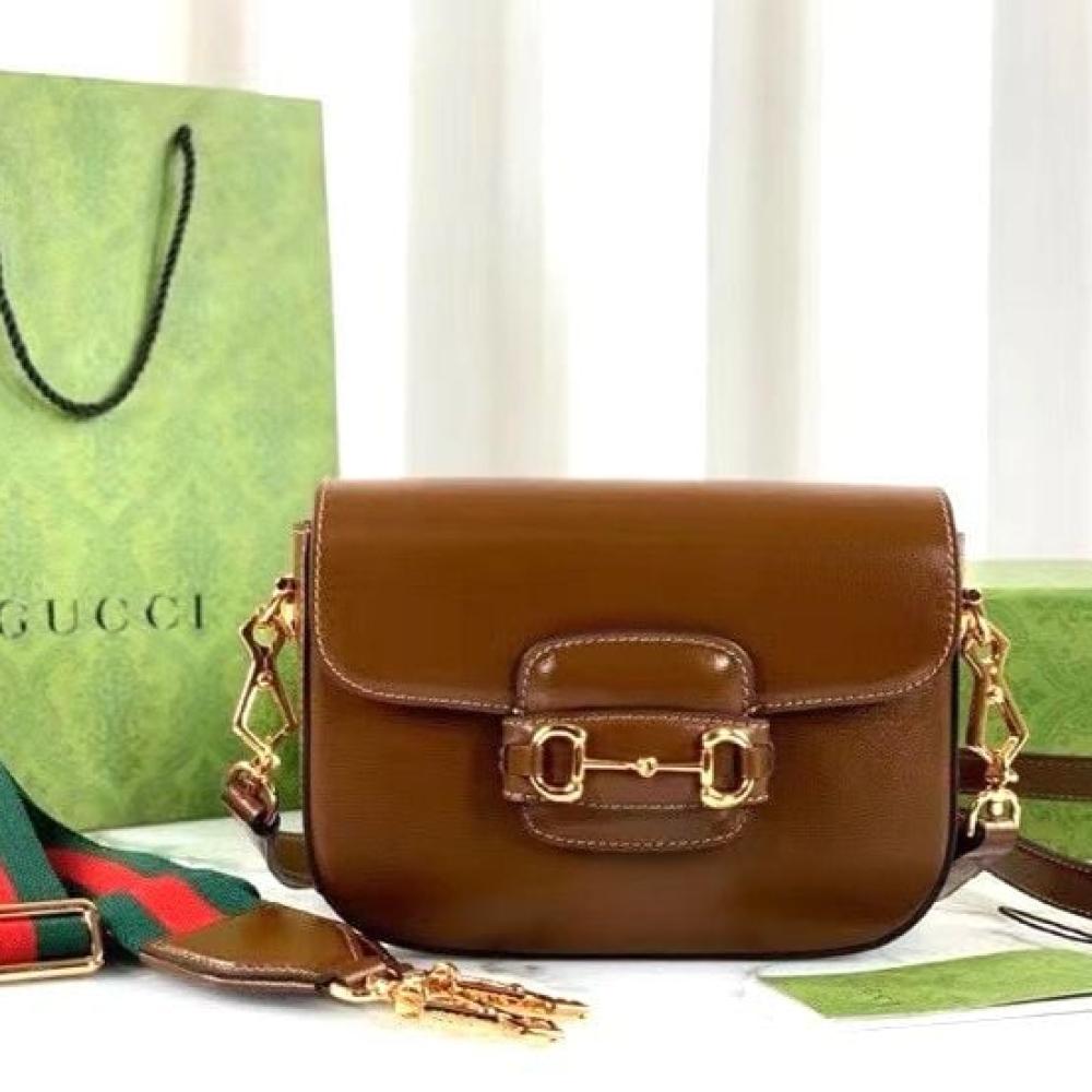شنطة قوتشي هورسبت بحامل كتف للنساء لون بني فاخرة