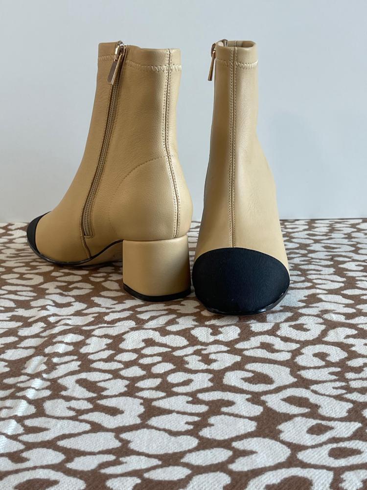 حذاء شانيل جزمة قصيرة الرقبة نمط سحاب لون بيج أسود