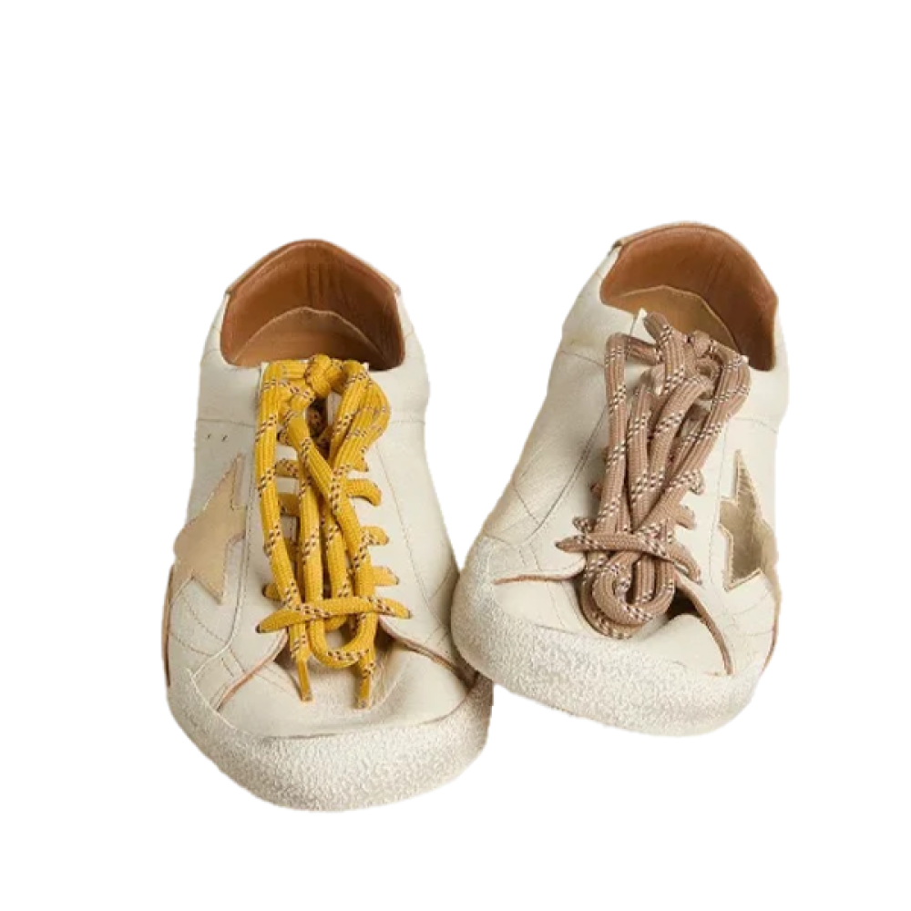 سنكرز جولدن جوس ترو ستار اوف وايت برباط ملون يجمع بين الكلاسيكية والأناقة العصرية بلمسات شبابية ملفتة.
