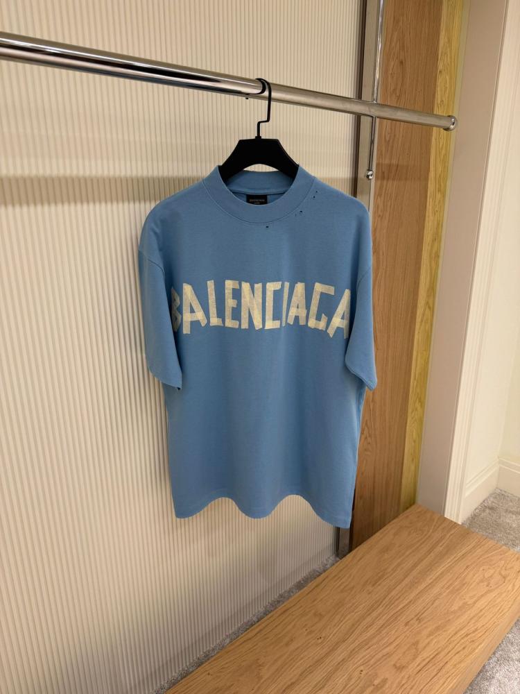 تي شرت فضفاض بالنسياغا رجالي بلون أزرق وشعار الماركة