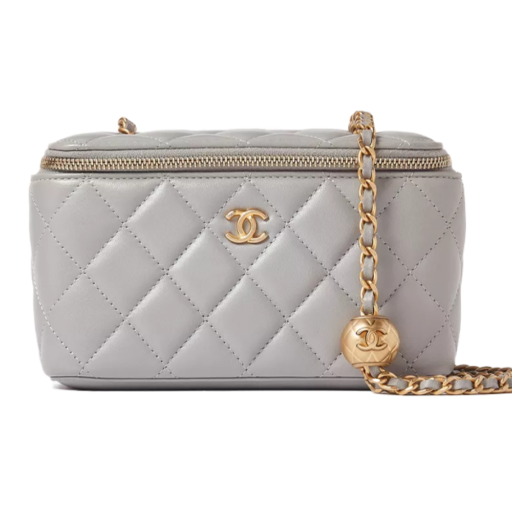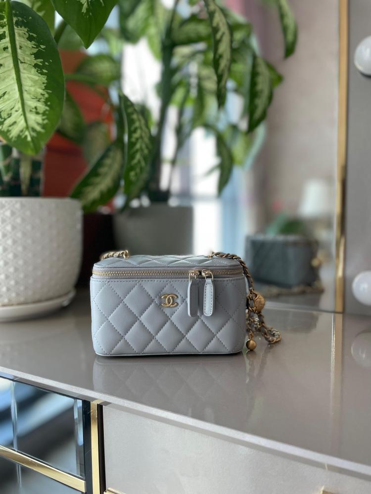 حقيبة فانيتي المستطيلة من شانيل باللون الرمادي – رمز الأناقة العصرية