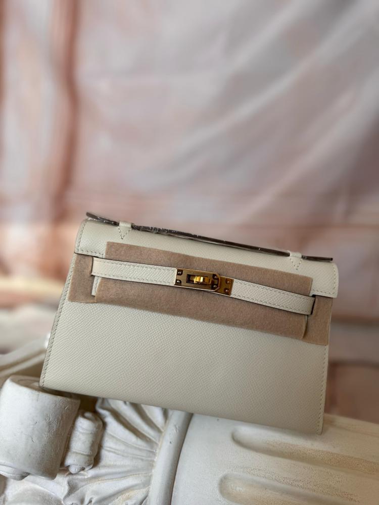 شنطه جلد باوتش هيرميس كيلي بلون أبيض بمعدن ذهبي