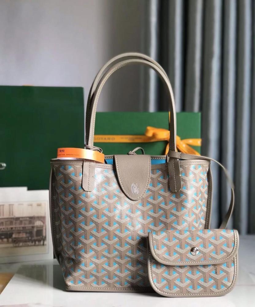 حقيبة قويارد جلد فاخر لون أزرق وبيج بمقابض علوية