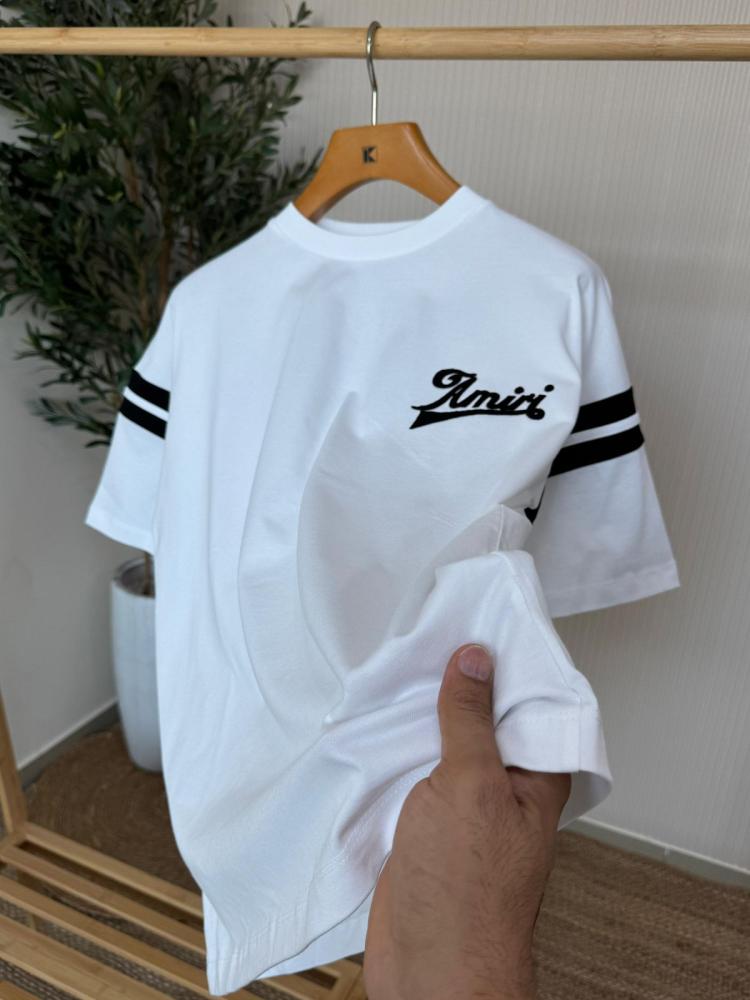 تي شيرت رجالي AMIRI لون أبيص وشعار اسود