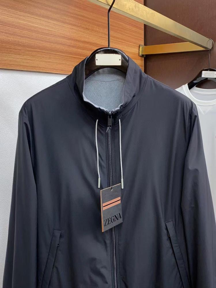 سترة زينيا دبل فيس للرجال نمط سحاب لون كحلي رمادي
