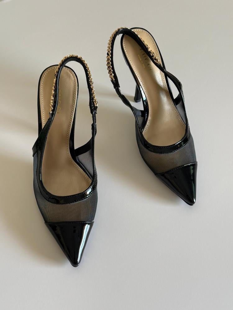 مزايا صندل شبكي كعب عالي جوتشي أسود: