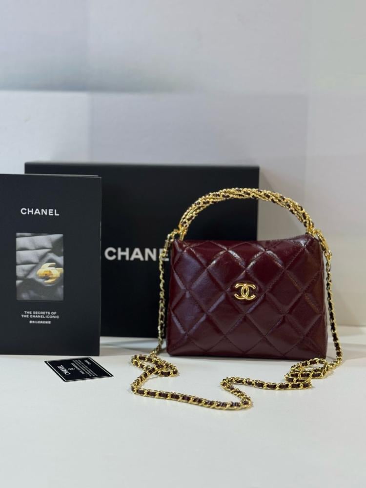 حقيبة يد مع سلسلة شانيل 18سم بلون برغندي وذهبي
